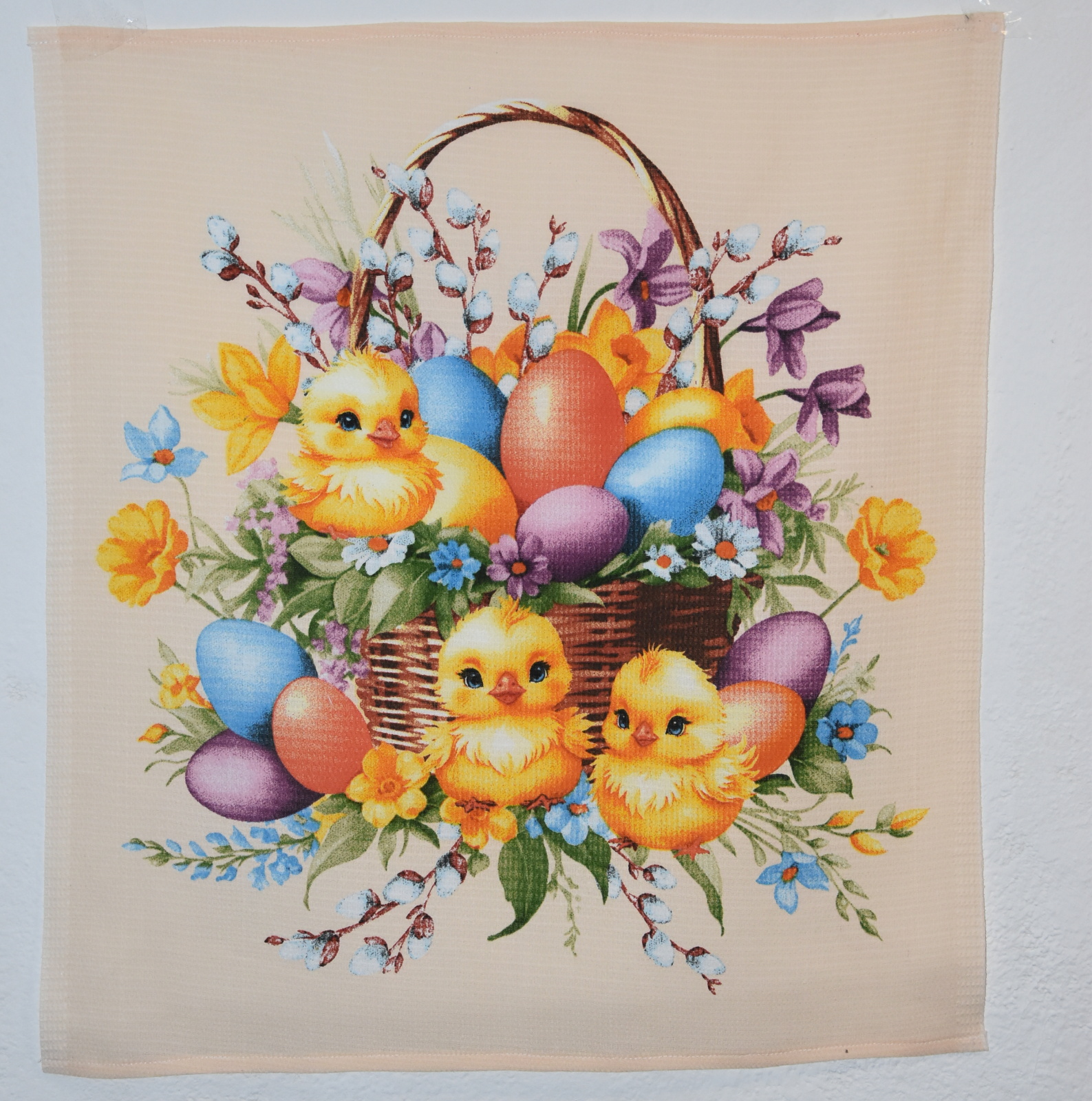 vaflová utěrka -velikonoční kuřátka s košíkem